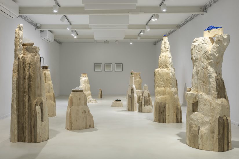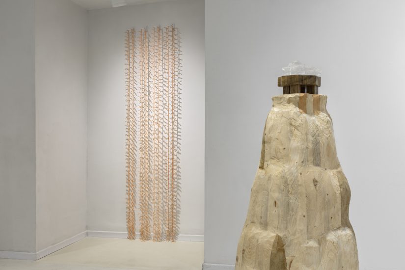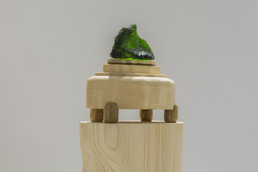 בבואה להציב בחלל הגלריה את האוסף שיצקה מרקמת הצלקת של האספלט, קליפשטיין מציבה כל מעין–אבן כמו–יקרה על מעמד שעוצב עבורה. את המעמדים הללו היא ממקמת על גושי עץ מסיביים, מהוקצעים בגסות. אלה מגושמים, נבדלים זה מזה, גשמיים להכעיס, כמעט פגאניים. הם ניצבים בחלל כמזבחות לאלים קדומים, ועליהם נחות האבנים כמעין מנחה או נוכחות שגיבה. נקיקי הדרך הצרים שקיבלו גוף היו לכלים במשחק מאגי.